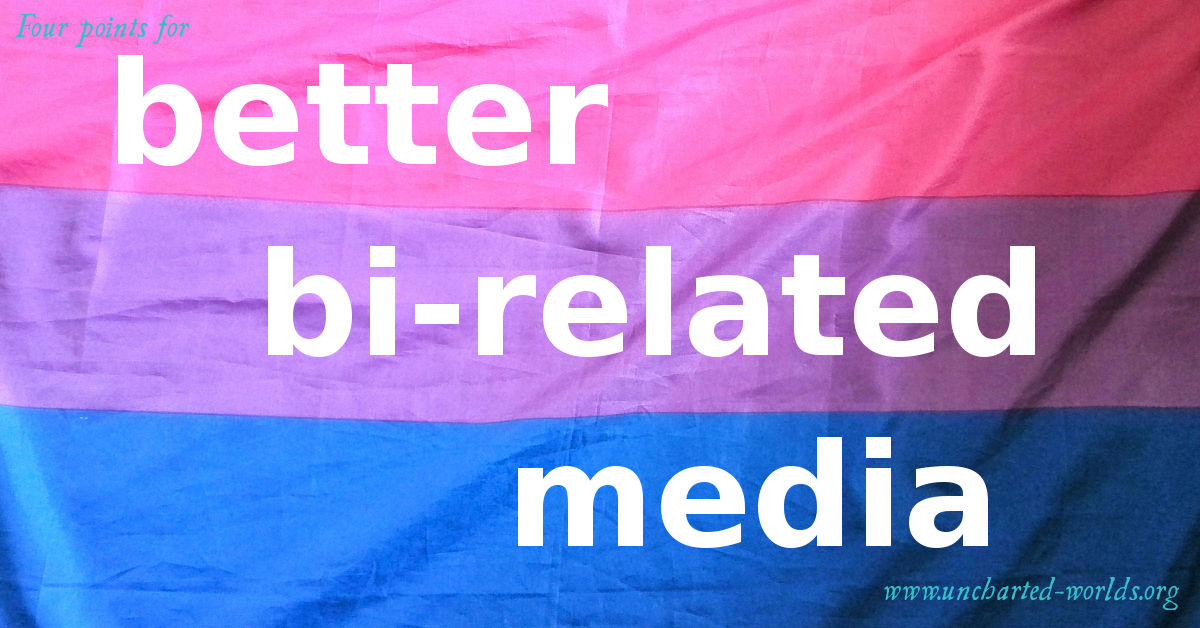 That doesn’t only mean non-bi people; we can benefit from considering this stuff ourselves. And some of the points are also relevant where we ourselves might be writing about some other marginalised group.